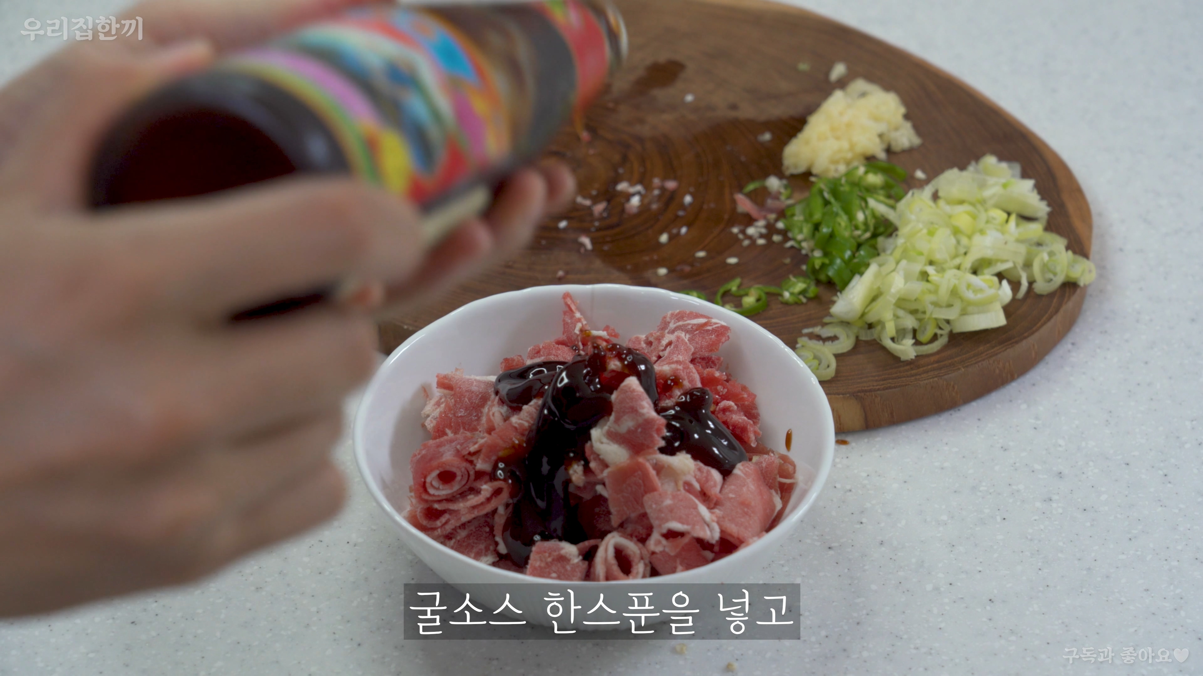 차돌박이에 먼저 굴소스 한스푼을 넣고